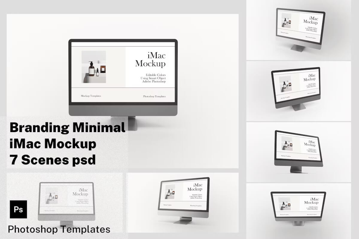 模型是一种可编辑的模板,可用于显示最终产品的复制品/模型:在图形设计领域,它用于为您的客户提供他们在这种情况下订购的产品的非常详细的预览。因此,我们提供的工具可以让您更轻松地制作 Minimalist iMac 样机。