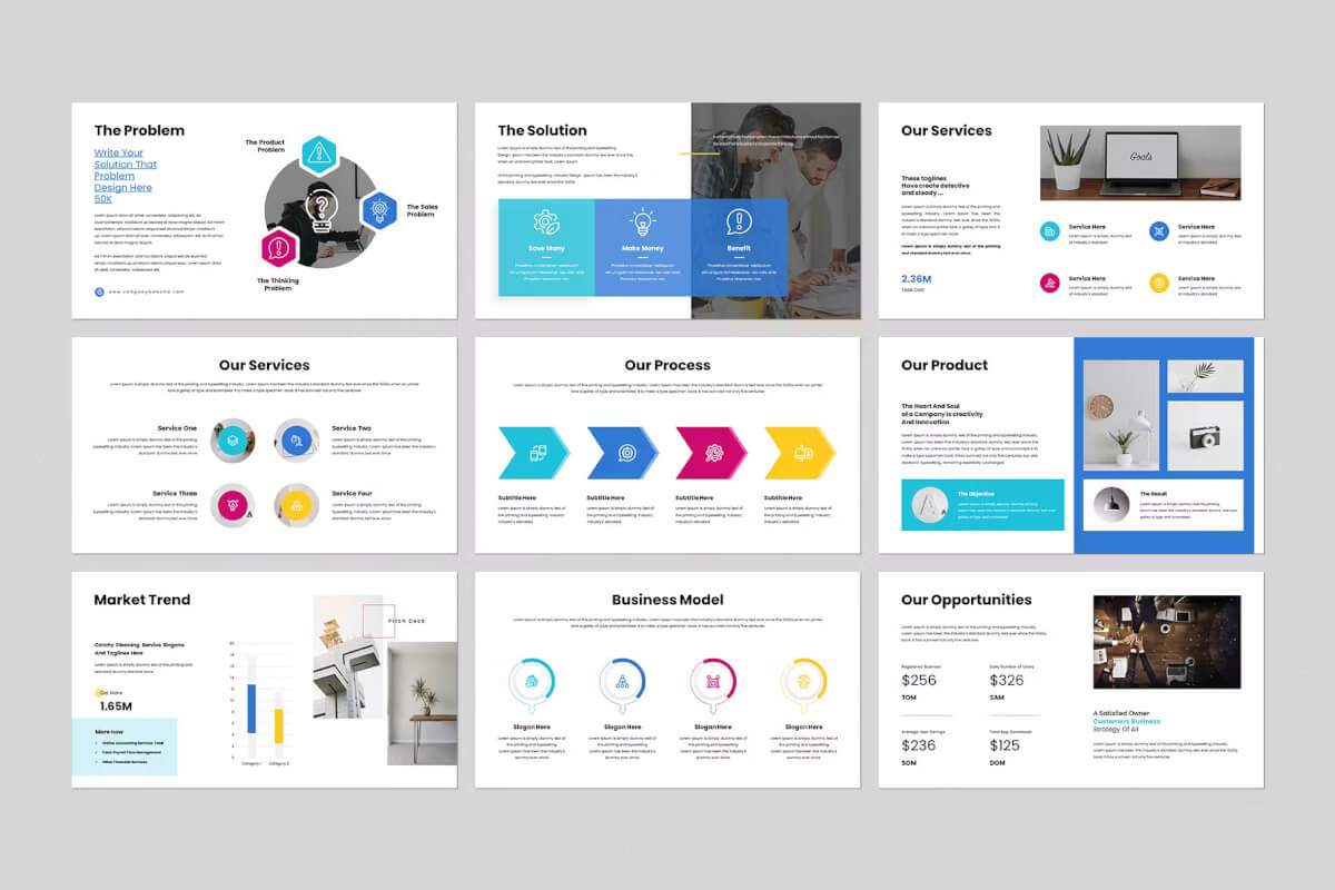 使用投资者宣传册演示文稿模板以专业、简洁的方式展示您的作品。这是一个简单、现代但功能强大的设计,包括创意照片布局、信息图表、表格、矢量图标、图表和大量出色的功能,可在另一个层面上展示您的作品和公司简介。