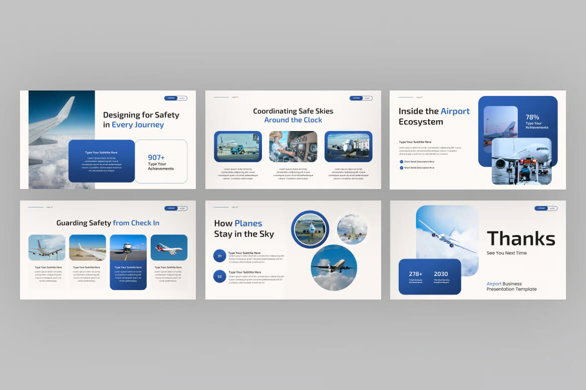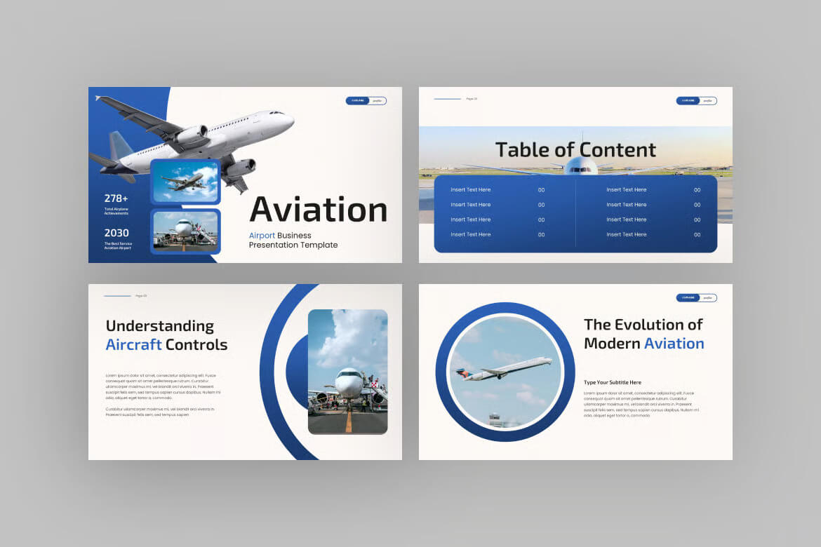 Aerolux专为航空业专业人士设计,为您的演示文稿带来高端美感。凭借结构化的布局和优雅的设计,它确保您的关键数据、图像和方案在会议或投资者会议上准确清晰地呈现。