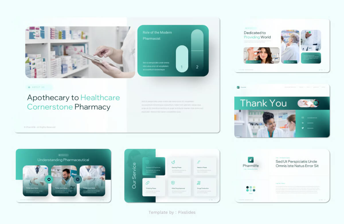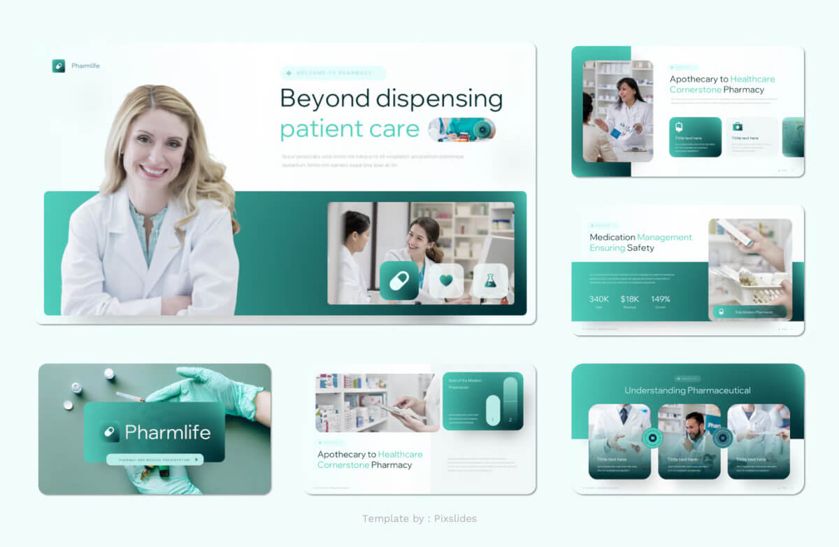 Pharmlife – 医疗和药学演示模板。每张幻灯片都独具特色,而非重复设计。只需使用 Keynote,即可为您的品牌打造令人惊艳的演示文稿。它非常适合用作数字媒体资料包、营销资料包或您的[不清楚 – 可能是“您的”]。