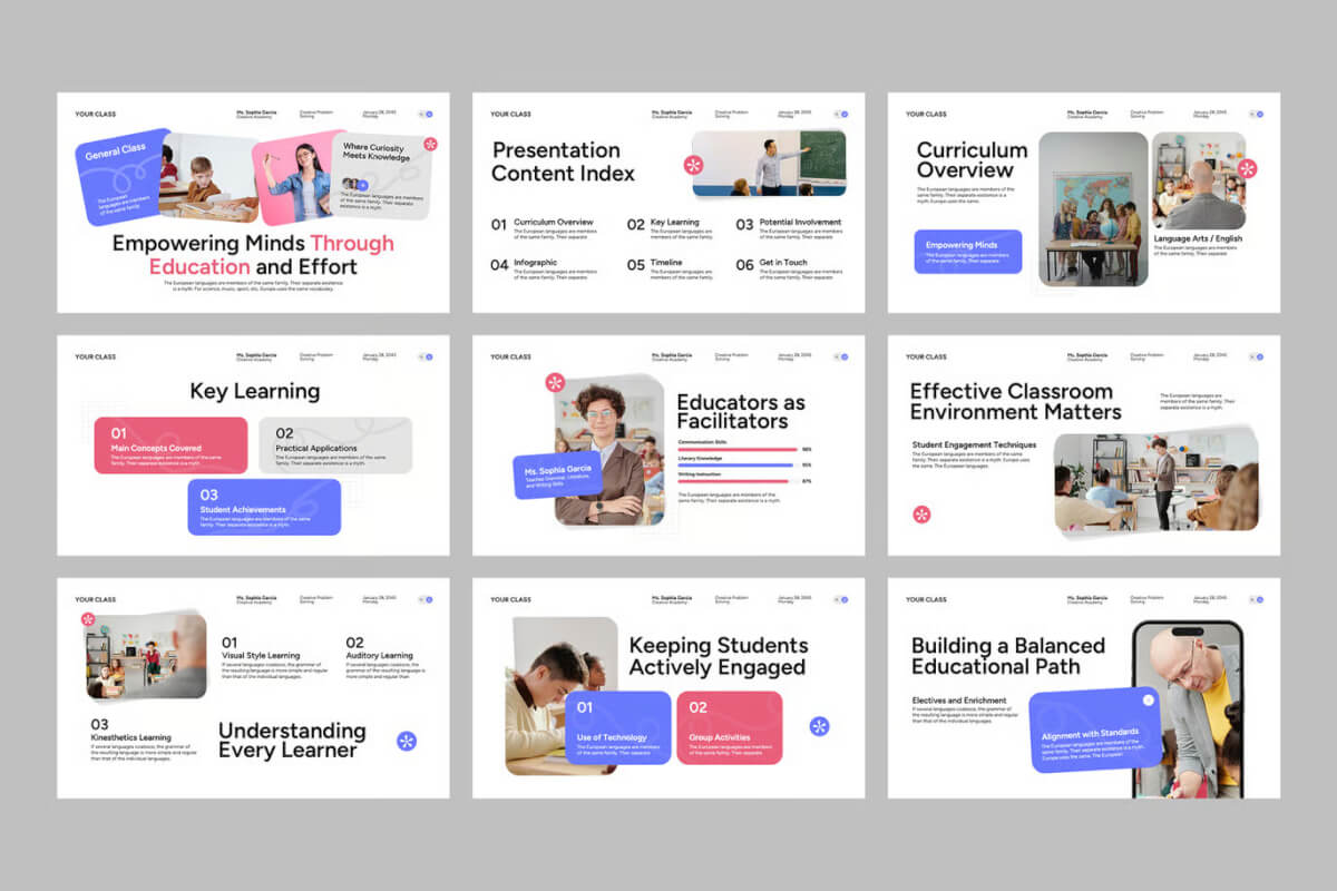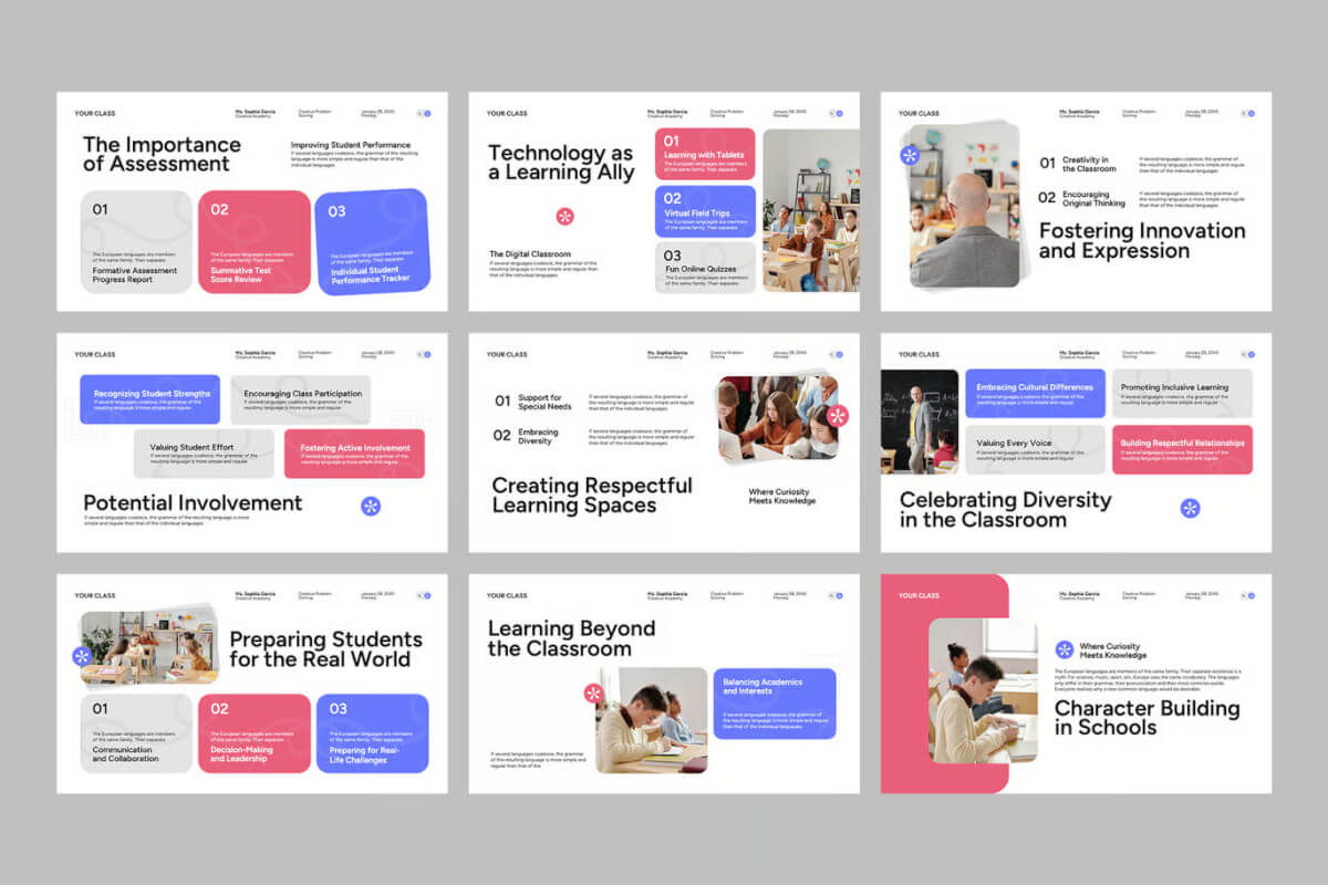这款模板设计简洁专业,确保您的教学演示文稿看起来清晰醒目,极具影响力。